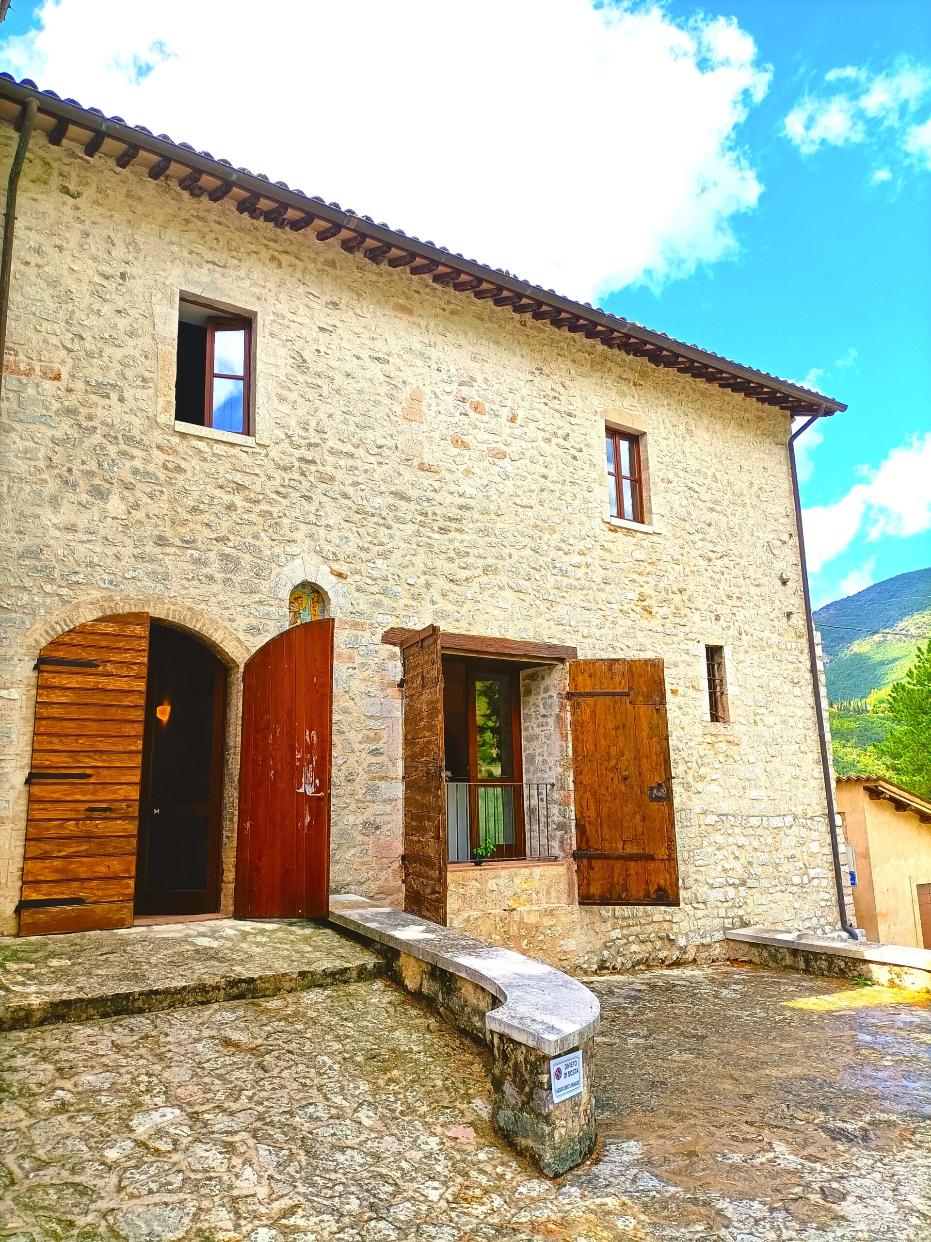 Ci troviamo a Vallo di Nera, un borgo medievale in Umbria. Con soli 355 abitanti, il borgo รจ perfettamente conservato e offre un’atmosfera rilassante e intima. Situato su una collina soleggiata, domina la verde e rigogliosa Valnerina. Vallo di Nera รจ uno dei “Borghi piรน belli d’Italia” e ha ricevuto la Bandiera Arancione dal Touring Club Italiano per la sua eccellenza nel turismo, ospitalitร e qualitร ambientale.